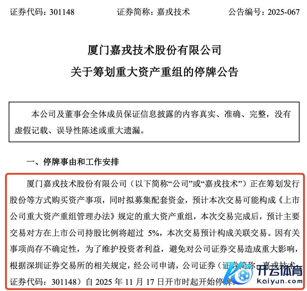 嘉戎手艺示意,臆度在不越过10个交游日的时刻内走漏本次交游决策。若未能在上述期限内召开董事会审议并走漏交游决策,公司证券最晚将于12月1日开市起复牌并隔断谋略联系事项。