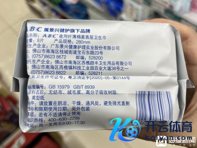 线下实体店销售的ABC卫生巾圭臬编号为GB 15979 GB/T 8939,凭证线上店铺的客服暗示,卫生巾家具的PH值一直是7,莫得偏酸偏碱性