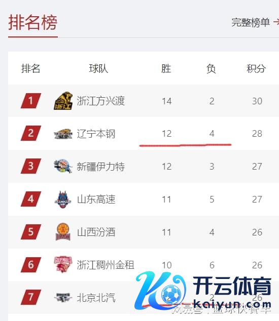 CBA旧例赛仍是进行了16轮,比赛仍是打了三分之一赛程,积分榜第别称之争也极端强烈。广厦、辽宁以及新疆现在暂居积分榜前三。不外,现在CBA积分榜这份排行却极为仙葩与交集,全定约胜率第2的北京队,确切被排到第7名,多赢2场球队的他们开云体育,排行反而不如多输2场球队的浙江队,积分榜前七名的球队,如若按照胜率排行的话,除了积分榜第三的新疆队和第5的山西队,其余3支球队排行沿途乱套了。卫冕冠军辽宁队胜率只可排在第四,却红运的稳坐积分榜第2。 先来望望积分榜现在的排行,1-7名永别是广厦(14胜2负)