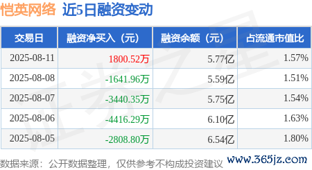 本站音书,8月11日,恺英汇聚(002517)融资买入7286.65万元,融资偿还5486.13万元开yun体育网,融资净买入1800.52万元,融资余额5.77亿元。